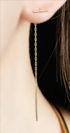 細いロッドから華奢なチェーンが垂れるピアスのようです。