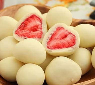 丸ごと一粒使った甘酸っぱいサクサクのフリーズドライいちごをホワイトチョコレートでコーティングしましたとのことです。
