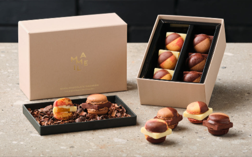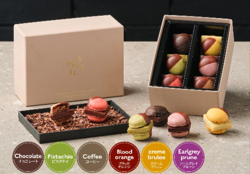 お笑い芸人のチャンネルやテレビでも多数紹介された話題の生チョコレートマカロンとのことです。 試作を進められた際に世界の名だたるチョコレートメーカーのチョコレートを使われたものの、 納得された味に仕上がることがなかったそうです。 そこでチョコレートから作るしかないとなられたそうで、 カカオ豆を仕入れてチョコレートを焙煎、粉砕、コンチング、テンパリングをされて作る1粒のマカロンのために開業されるところから始められたとのことです。 箱を開けるとカカオハスクと言われる一般的にはすてられてしまうカカオの殻が一面に登場するそうです。